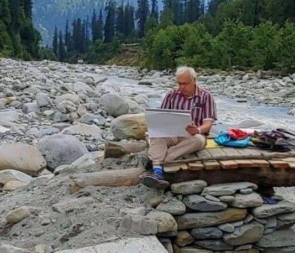 He loves the Himalayas and enjoys nature and trekking. He has travelled in interior parts of Himalayas and often spends time in the mesmerizing mountains to soak in nature’s beauty and also to do watercolour landscapes. His love for Himalayas has taken him to interior areas of Kashmir, Himachal Pradesh, Gadhwal and Kumaon regions of Uttarakhand, Nepal, Sikkim, Bhutan etc, often staying in remote places and villages. Apart from Trekking, he loves wandering at leisure in Himalayas.